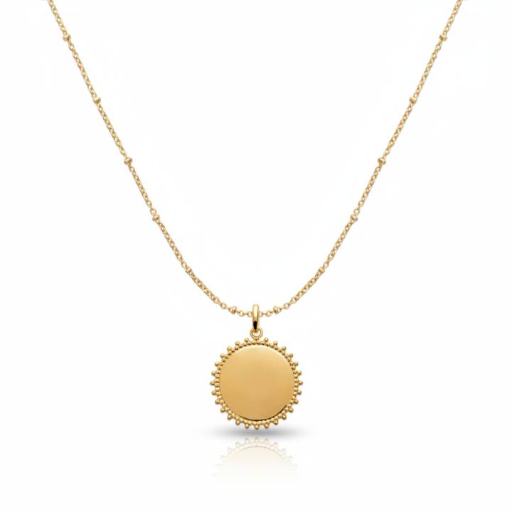 Collier ronde plaqué or Beda pour femme. Collier de la marque Bijoux en Vogue, un bijou tendance issu de la dernière collection . Collier Beda à porter facilement au quotidien ou qui fera un joli cadeau pour femme à offrir tout au long de l'année, quelque soit l'occasion. Personnalisez votre Collier Beda avec la gravure texte. Collier au style moderne, sa forme ronde fera de votre bijou un véritable atout. Collier en plaqué or de qualité combinant un design original et un look unique.